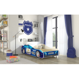 Jednolůžková postel SHERIFF je ideální volbou pro malé milovníky aut a motorismu. Zajímavý design umožní vašemu dítěti cítit se jako skutečný strážce zákona. Dále je možné objednat LED osvětlení, které jistě oživí interiér a vytvoří jedinečnou atmosféru v pokoji vašeho dítěte. V procesu výroby byly použity ekologické vodní barvy, které jsou bezpečné a odolné vůči mechanickému poškození. Navíc postel nemá ostré rohy a grafika je chráněna laminátem.