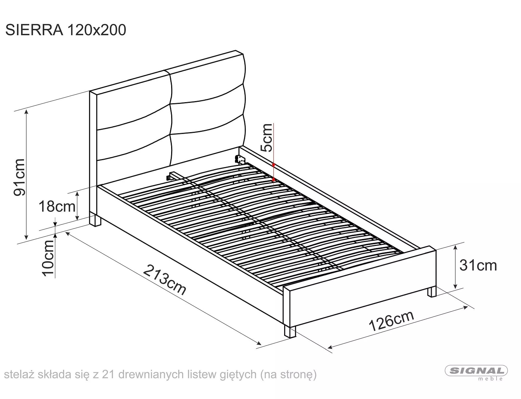 | Výška předního čela postele | 31 cm |