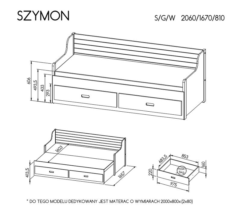 Postel "SZYMON" - Barva korpusu: borovice na antracit