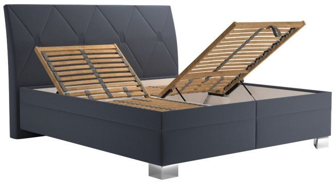 Postel Timea se pyšní pečlivým zpracováním s osobitým designem. Tato postel Vám poskytne příjemnou oázu pro odpočinek a ráno budete vstávat příjemně odpočinutí a svěží. V ceně postele jsou lamelové rošty s písty. Rošty mají 28 lamel s možností nastavení tuhosti, mechanickým polohováním hlavy a nohou a popruhem proti přetížení. Postel je také vybavena velkým úložným prostorem, který je přístupný od nohou. Přehoz-denní deka a polštářky jsou v ceně postele. Postel je dodávána bez matrací.