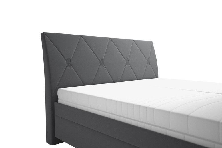 Postel Timea se pyšní pečlivým zpracováním s osobitým designem. Tato postel Vám poskytne příjemnou oázu pro odpočinek a ráno budete vstávat příjemně odpočinutí a svěží. V ceně postele jsou lamelové rošty s písty a velmi pohodlné matrace s výškou 21 cm. Rošty mají 28 lamel s možností nastavení tuhosti, mechanickým polohováním hlavy a nohou a popruhem proti přetížení. Jádro matrace je vyrobeno z velmi elastické PUR pěny o vysoké objemové hmotnosti a s částečným podílem přírodního oleje. Velká výška matracového jádra v kombinaci s velmi nízkým (změkčeným) odporem pěny zajišťuje vysoký lehací komfort a velmi dobrou podporu těla uživatele. Matrace je opatřena snímatelným, oboustranně prošitým a pratelným potahem. Celková výška matrace v potahu je cca 21 cm. Postel je také vybavena velkým úložným prostorem, který je přístupný od nohou. Přehoz-denní deka a polštářky jsou v ceně postele.