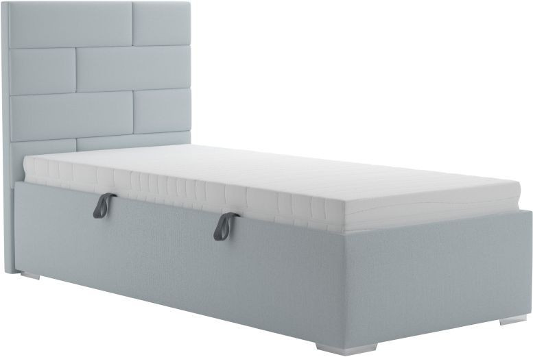 Moderní postel, která se hodí nejen do studentských nebo dětských pokojů, ale také do menších ložnic. Základem lůžka je pevný lamelový rošt s nastavením tuhosti lamel a s popruhem proti přetížení. Rošt se skládá z 28 lamel uložených ve výkyvných kaučukových pouzdrech. Snadnější manipulaci při otevírání úložného prostoru zajišťují pružinové mechanismy. Matrace není součástí postele. Součástí postele je úložný prostor, který se otevírá z boku postele. Tuto postel nabízíme také v dalších rozměrech. Postel je možné zakoupit také s matrací. Zboží je dodáváno v demontu.