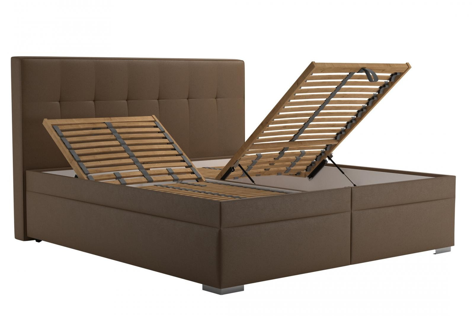 Úložný prostor lůžka se otevírá za pomoci plynových pístů od nohou postele.