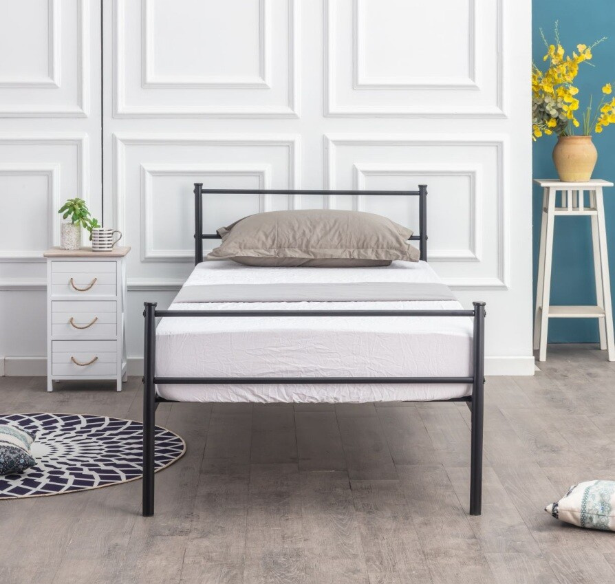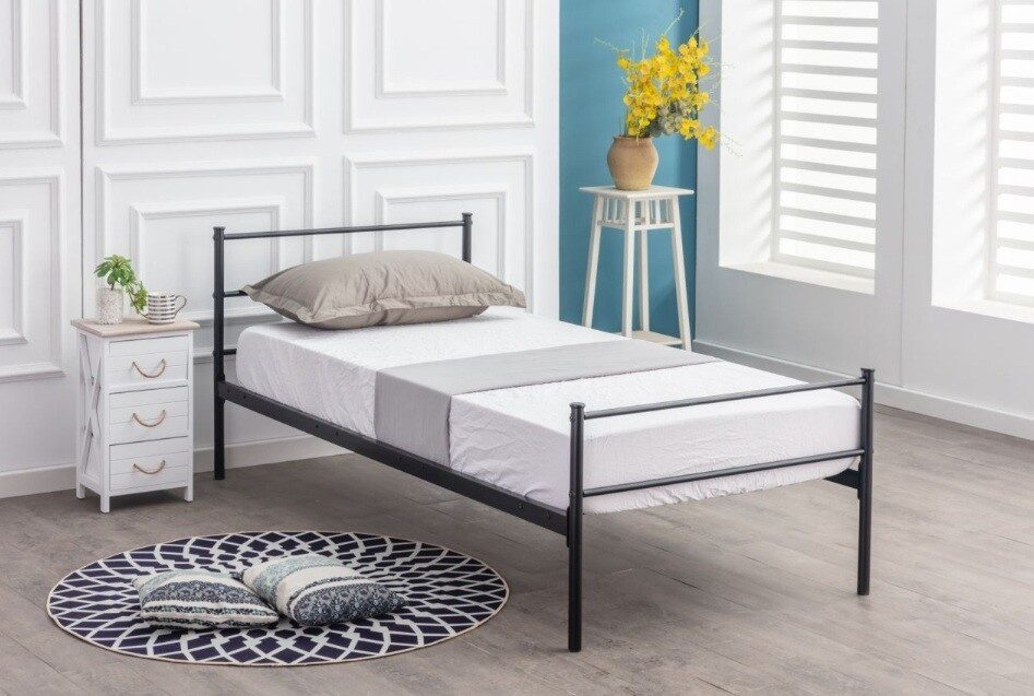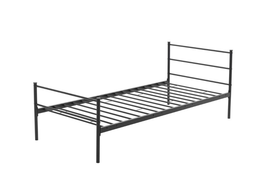 Kovové lůžko 90/200 Práškově lakovaná, černá barva, Opěrka hlavy ve výšce 81 cm Celková šířka: 96,5 cm Celková délka 205 cm