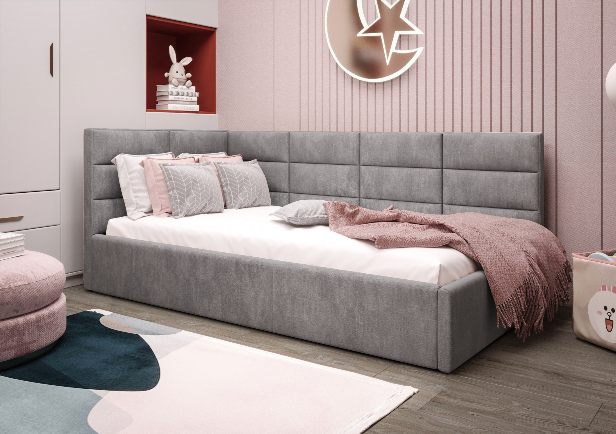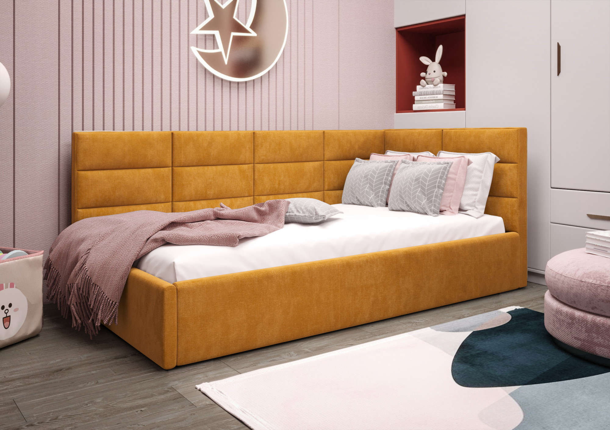 Čalouněná postel ZAZU je naším návrhem modelu pro jednu osobu. Vytvořen s ohledem na nejmladší – skvěle se uplatní také v pokoji pro mládež, hotelovém nebo penzionovém pokoji. Široký výběr tkanin a barev umožní přizpůsobit nábytek interiéru, který zařizujete. Již dnes se postarejte o spánek svého dítěte s značkou Meble Górecki.