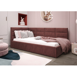 Čalouněná postel ZAZU je naším návrhem modelu pro jednu osobu. Vytvořen s ohledem na nejmladší – skvěle se uplatní také v pokoji pro mládež, hotelovém nebo penzionovém pokoji. Široký výběr tkanin a barev umožní přizpůsobit nábytek interiéru, který zařizujete. Již dnes se postarejte o spánek svého dítěte s značkou Meble Górecki.