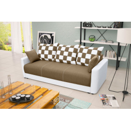 Moderní rozkládací pohovka s úložným prostorem. Výplň pohovky tvoří pružiny bonell a faliste v kombinaci s kvalitní PUR pěnou. Jednoduchým rozkladem pomocí automatu vznikne lůžko vhodné k příležitostnému spaní. Pohovku dodáváme v několika barevných provedeních, které také naleznete v naší nabídce. Rozpis rozměrů najdete na přiloženém obrázku s nákresem. V ceně pohovky jsou 3 velké kostkované polštáře a 2 malé polštáře v barvě pohovky. Ostatní vyobrazené dekorace nejsou v ceně.