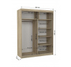 Posuvná skříň MARTINEZ je ideálním způsobem, jak uspořádat prostor. Nábytek je vybaven prostornými policemi a tyčí, na kterou můžete pověsit šaty, obleky, svrchní oděvy nebo košile. Na čelní straně se nacházejí ozdobné lacobely, které dodávají nábytku výjimečný styl. Díky tomu, že skříň je posuvná, nemusíte vyčleňovat další místo na otevření dveří, což z ní činí ideální řešení pro malý pokoj nebo úzkou předsíň. Zajímavým prvkem je efektní LED osvětlení, které dodává skříni i místnosti nádherný půvab.
