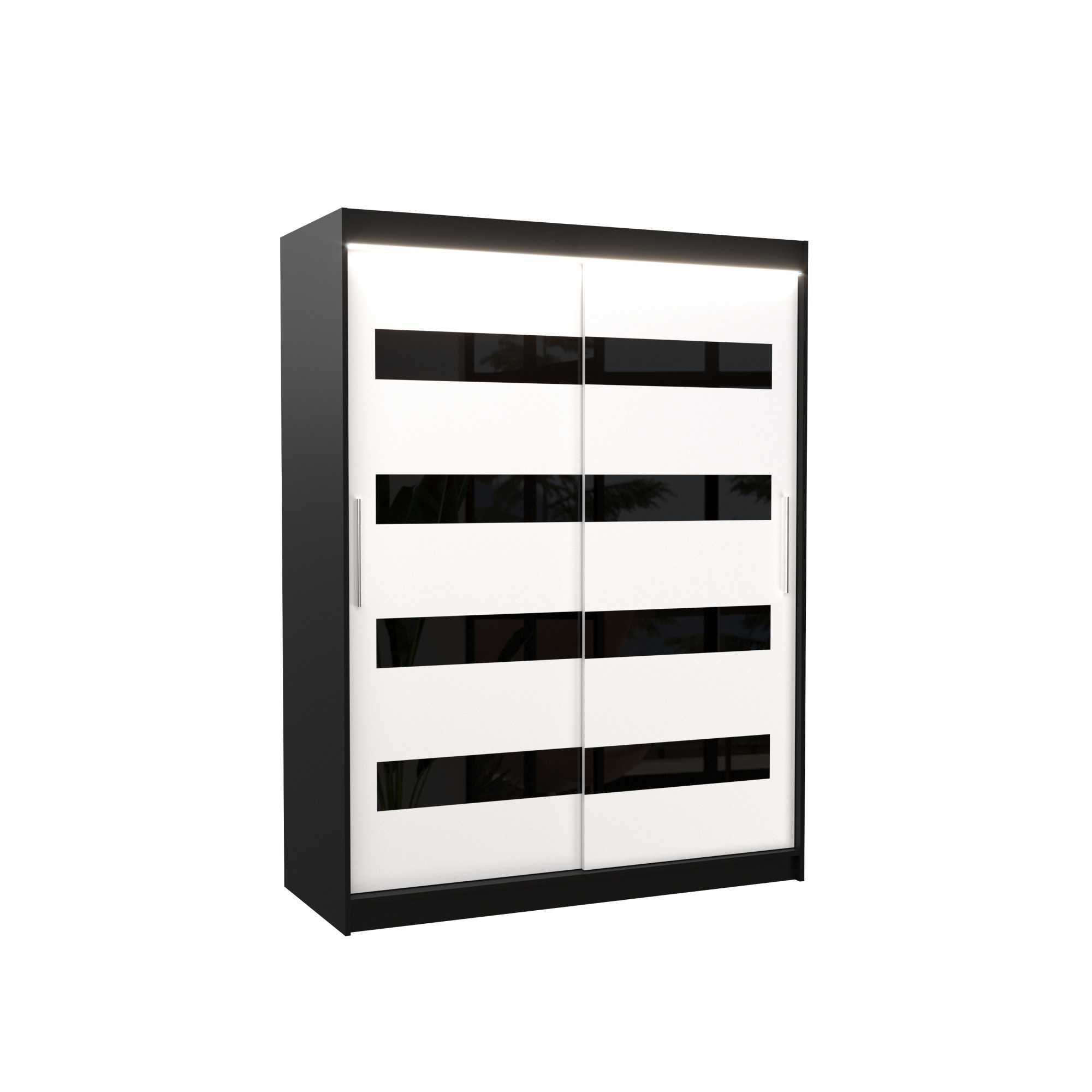Posuvná skříň s lacobelem a LED osvětlením MARTINEZ 150 Černá+Bílá