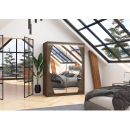Posuvná skříň se zrcadlem a LED osvětlením ALEN 150 Choco+Choco