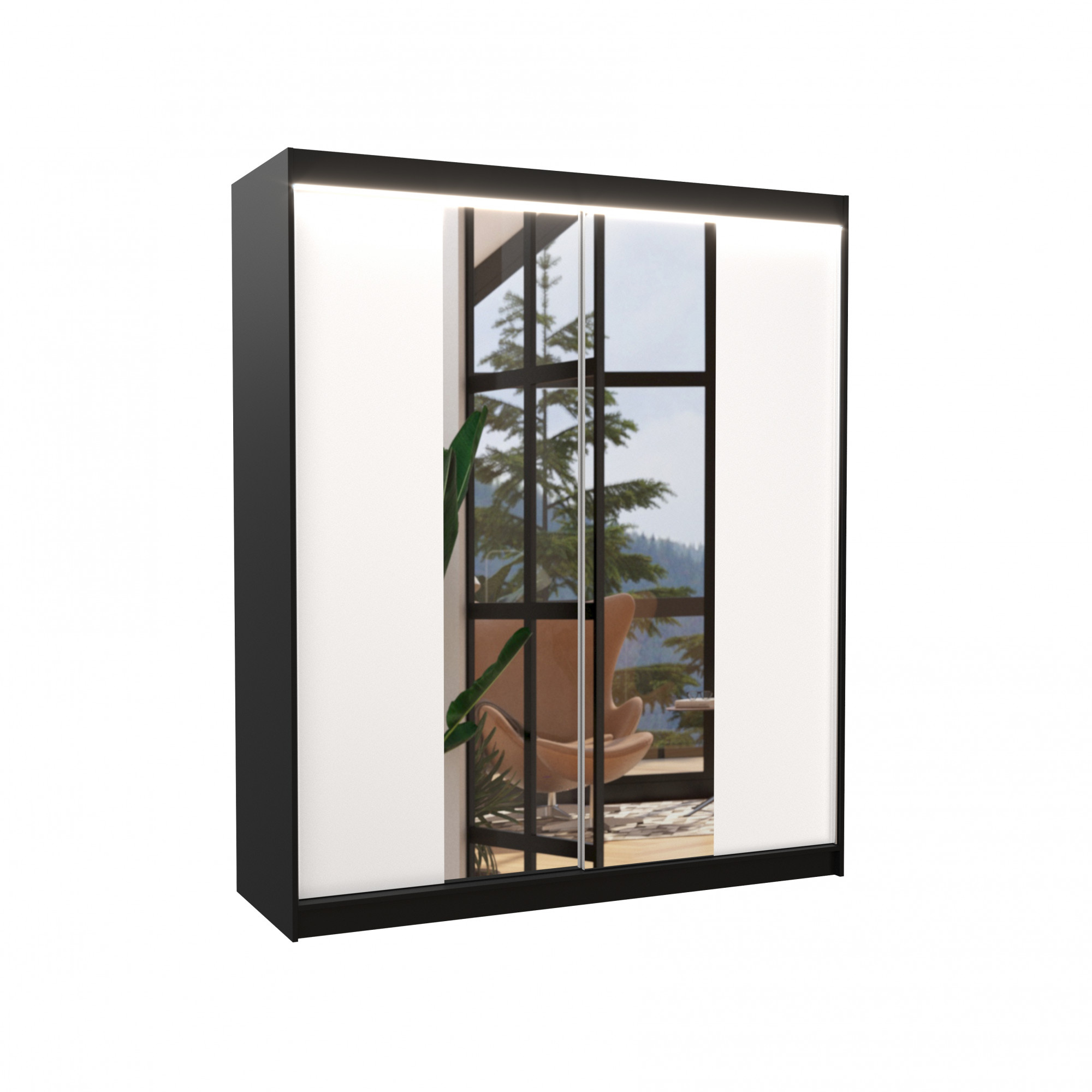 Posuvná skříň se zrcadlem a LED osvětlením BALANCE 180 Černá+Bílá