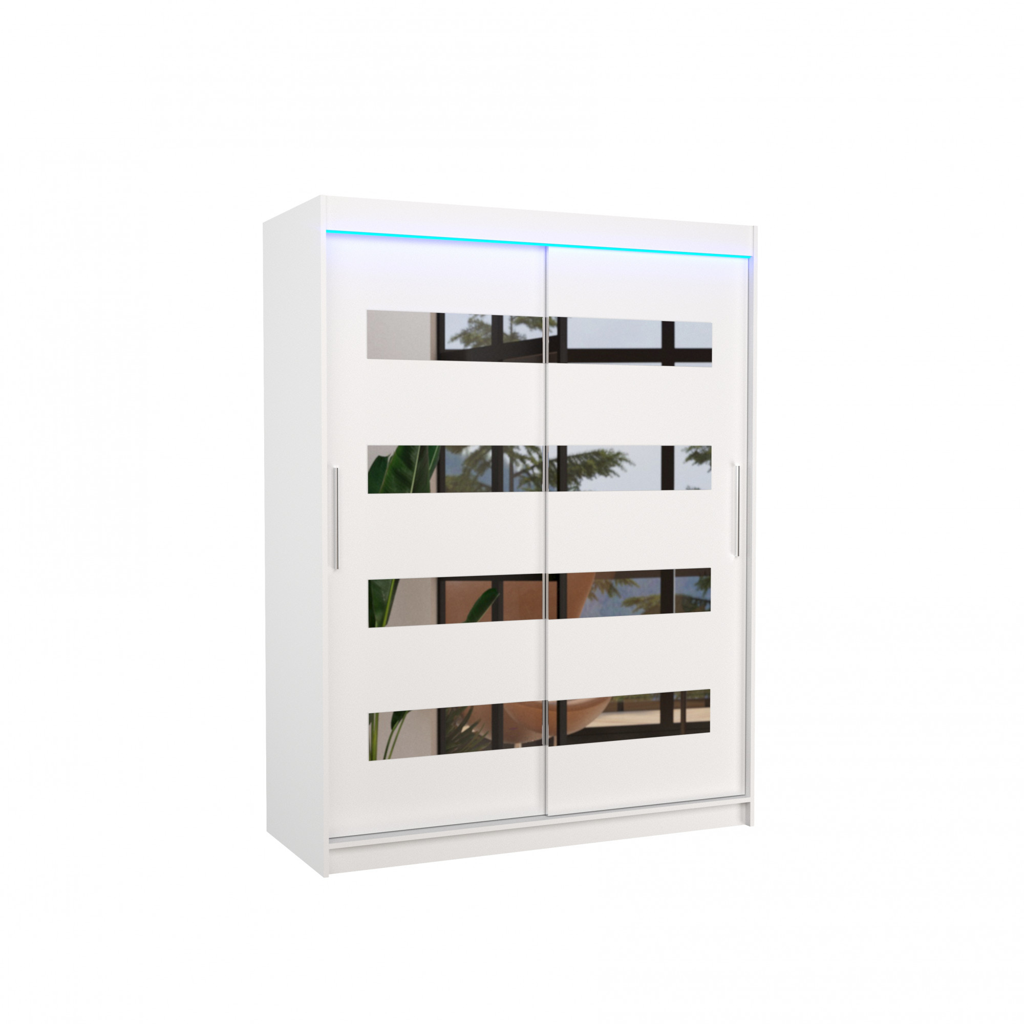 Posuvná skříň se zrcadlem a LED osvětlením BALTIC 150 Bílá+Bílá