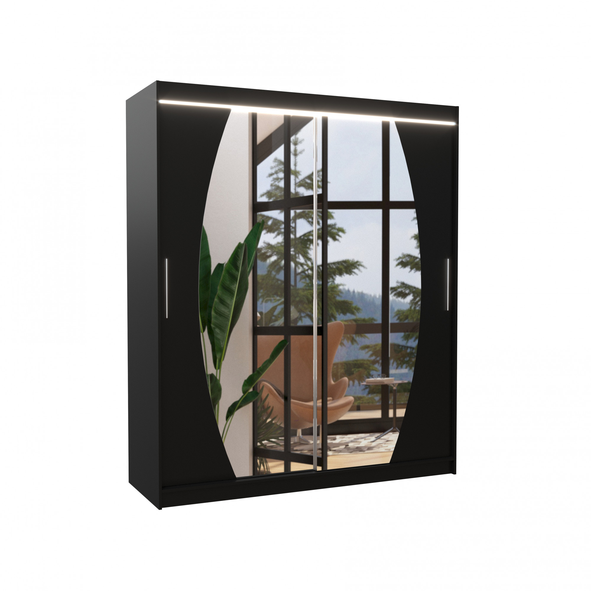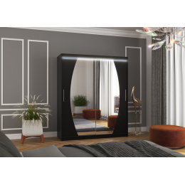 Posuvná skříň se zrcadlem a LED osvětlením BALTIMORE 180 Černá+Černá