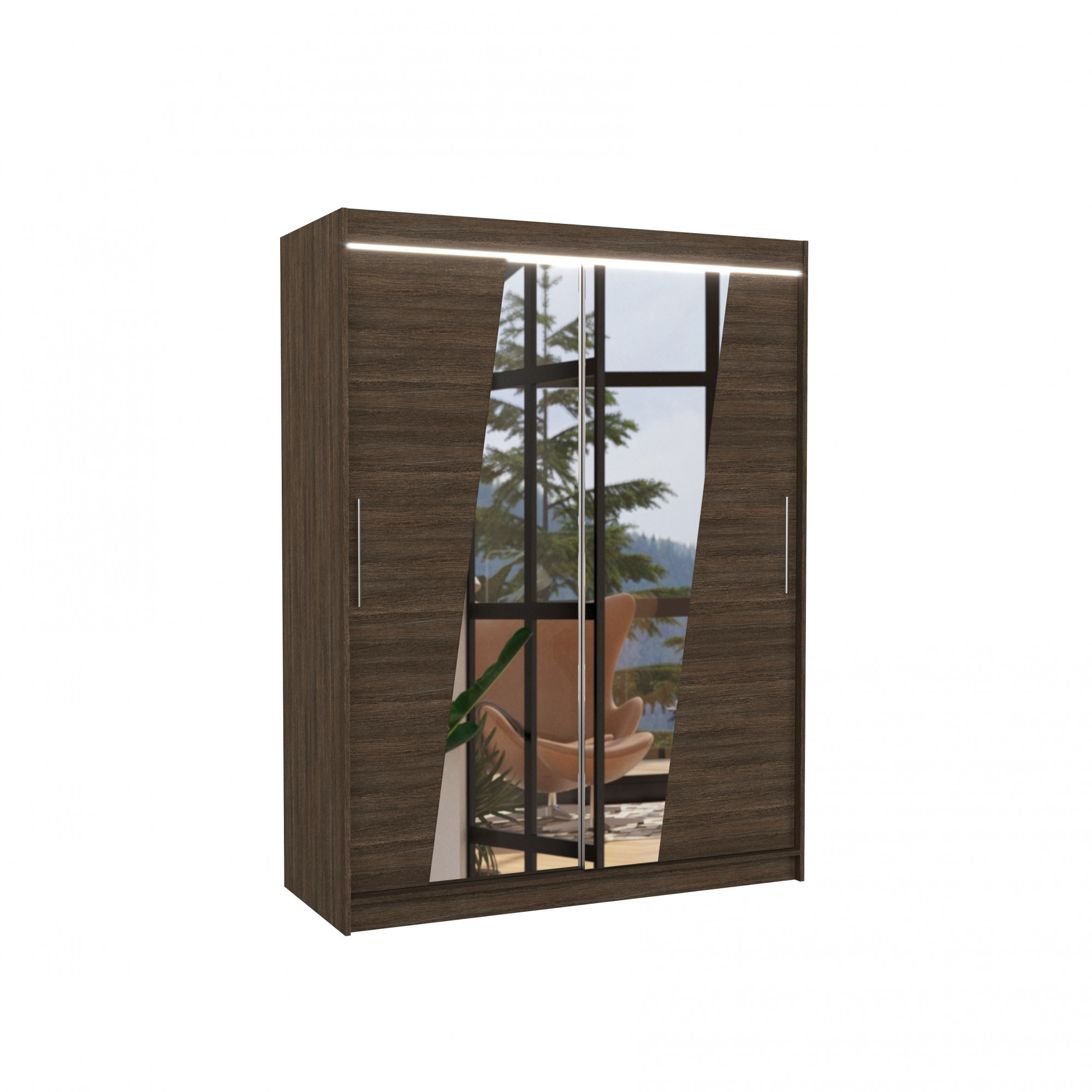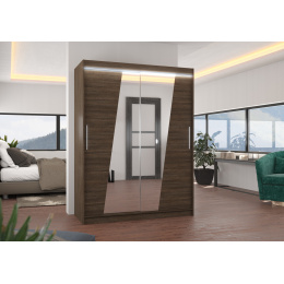 Posuvná skříň se zrcadlem a LED osvětlením BOLTON 150 Choco+Choco