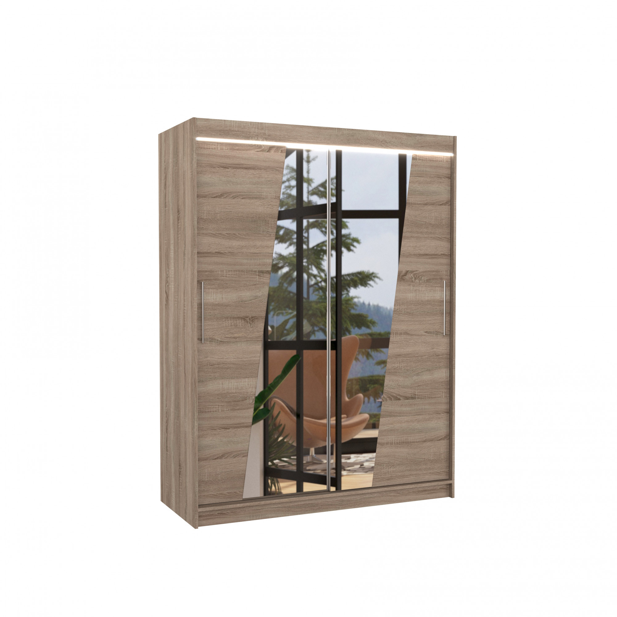Posuvná skříň se zrcadlem a LED osvětlením BOLTON 150 Truffle+Truffle