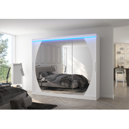 Posuvná skříň se zrcadlem a LED osvětlením CAMBE 250 Bílá+Bílá