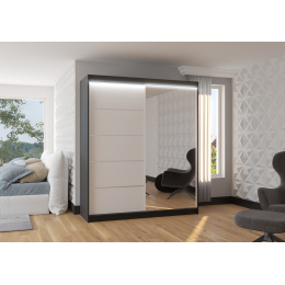 Posuvná skříň se zrcadlem a LED osvětlením CARO 180 Černá+Bílá