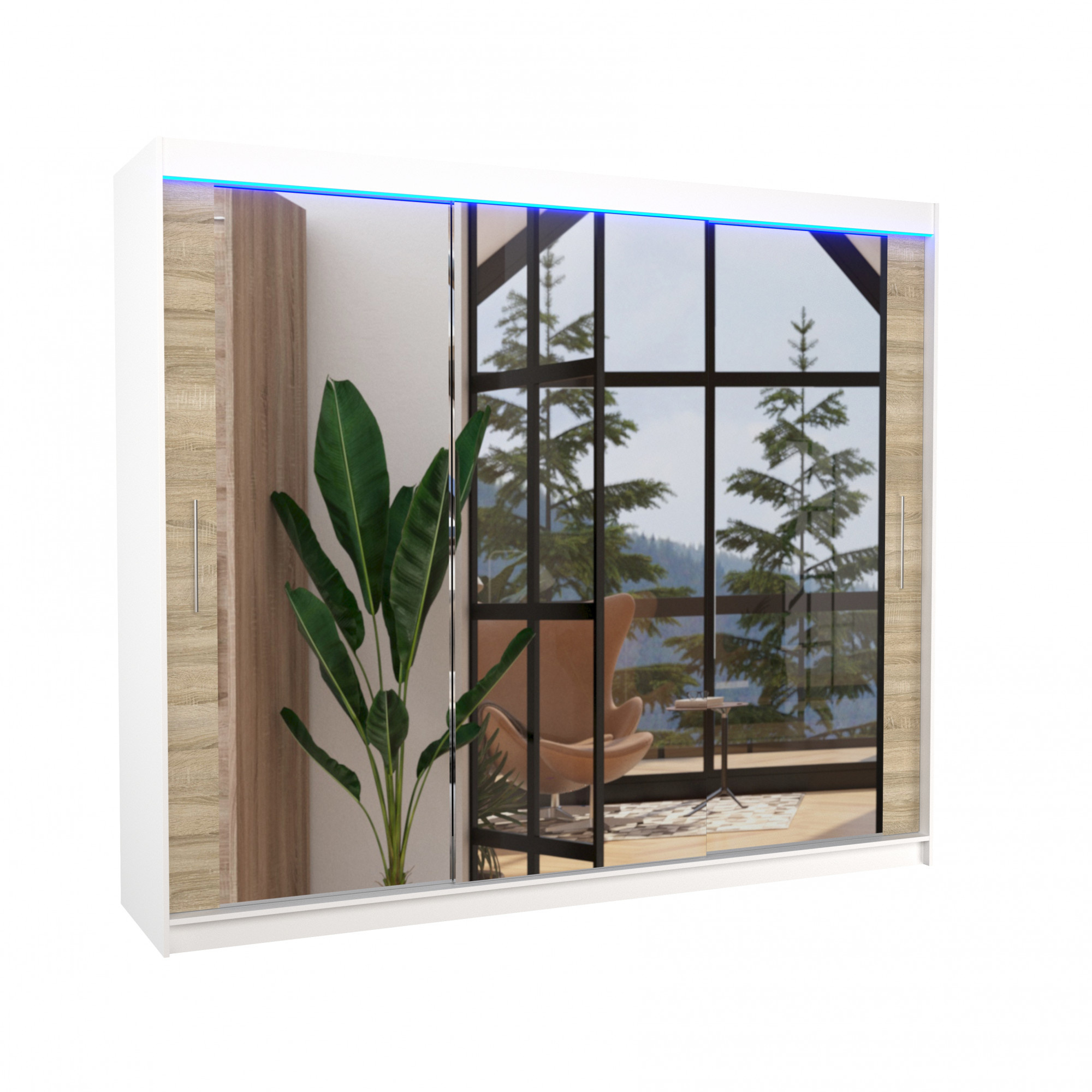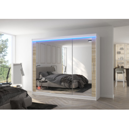 Posuvná skříň se zrcadlem a LED osvětlením CHESTER 250 Bílá+Sonoma