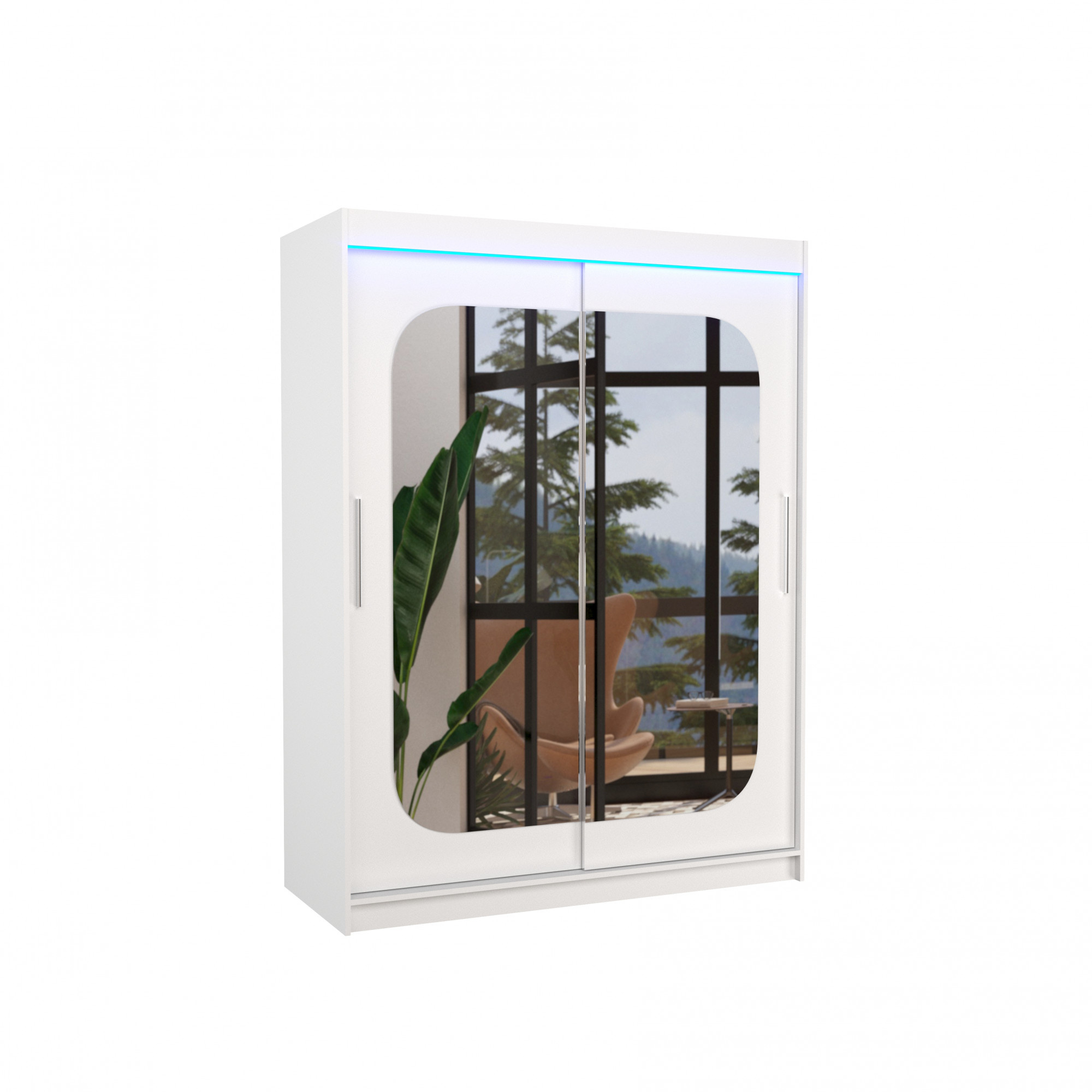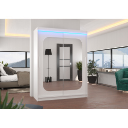 Posuvná skříň se zrcadlem a LED osvětlením CLEVER 150 Bílá+Bílá