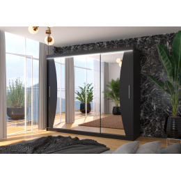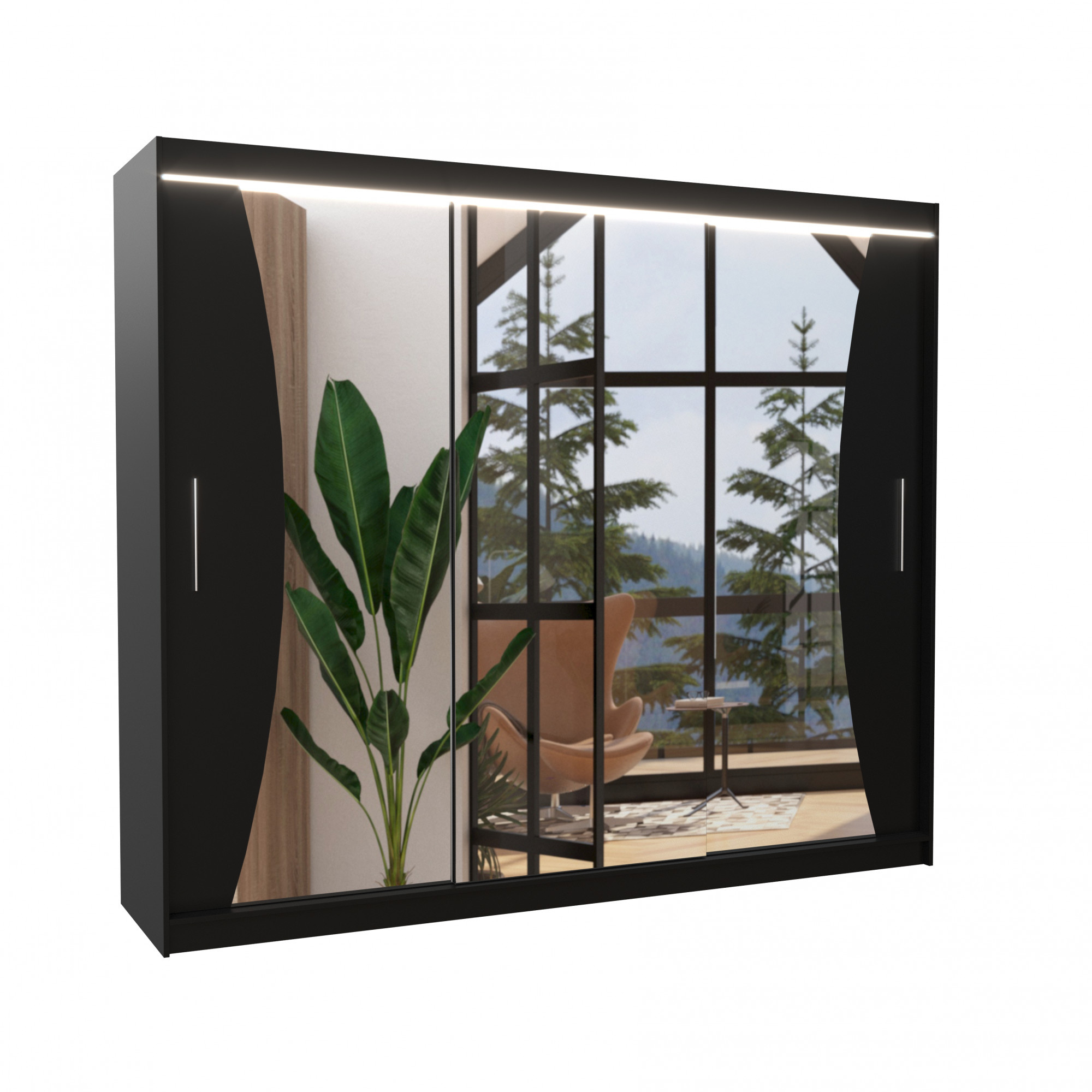 Posuvná skříň se zrcadlem a LED osvětlením DIEGO 250 Černá+Černá