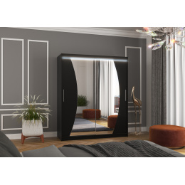 Posuvná skříň se zrcadlem a LED osvětlením DOLORES 180 Černá+Černá