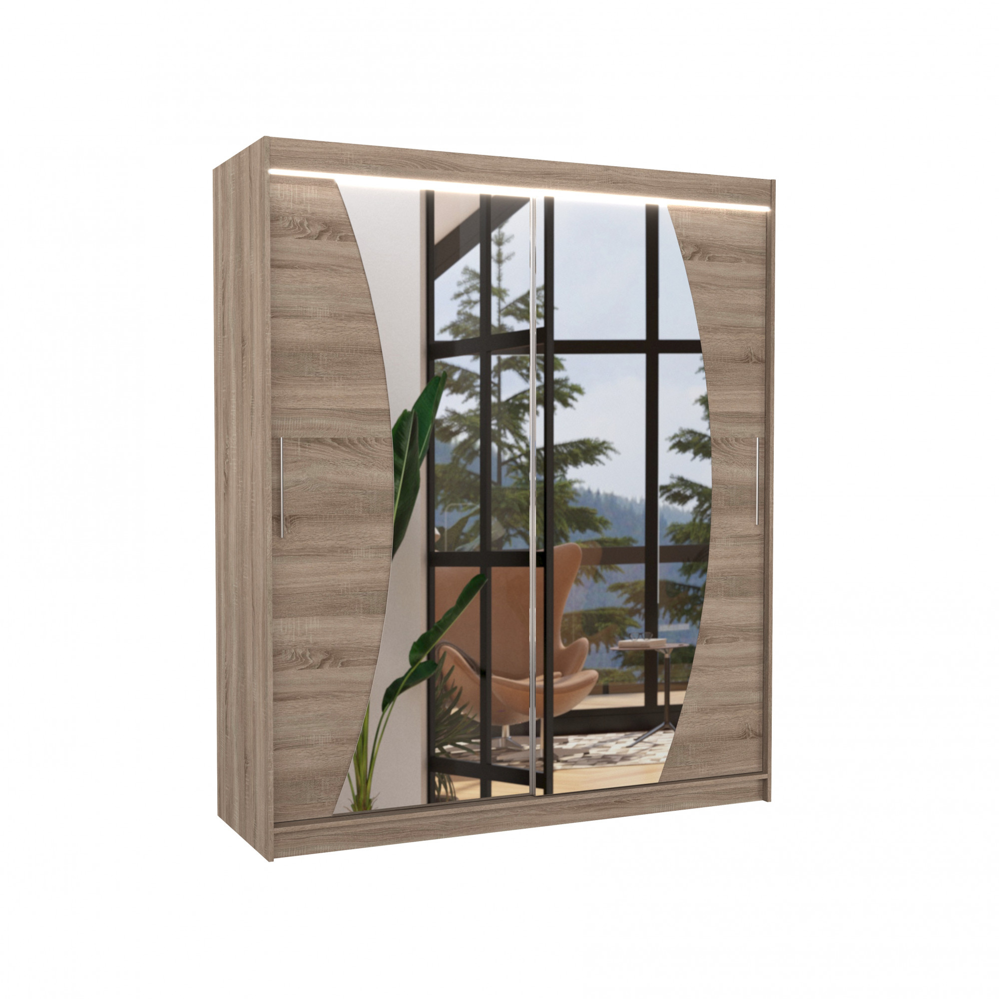 Posuvná skříň se zrcadlem a LED osvětlením DOLORES 180 Truffle+Truffle