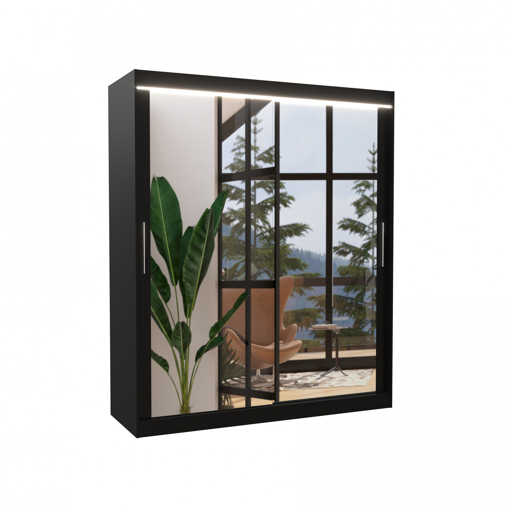 Posuvná skříň se zrcadlem a LED osvětlením ETTORE 180 Černá+Černá
