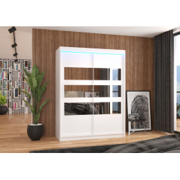 Posuvná skříň se zrcadlem a LED osvětlením FLORENTO 150 Bílá+Bílá