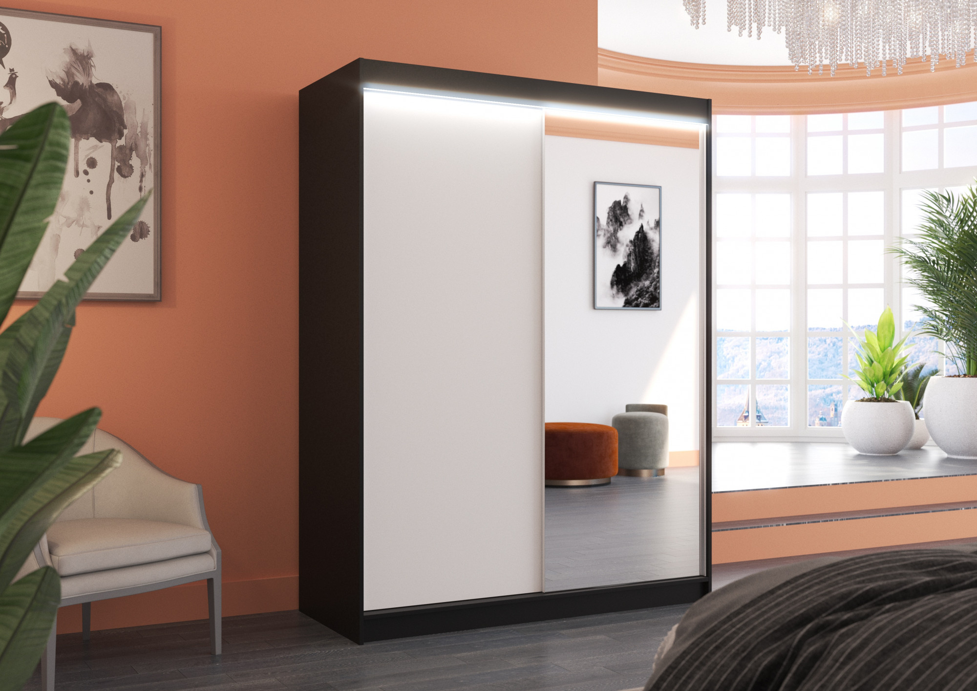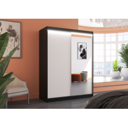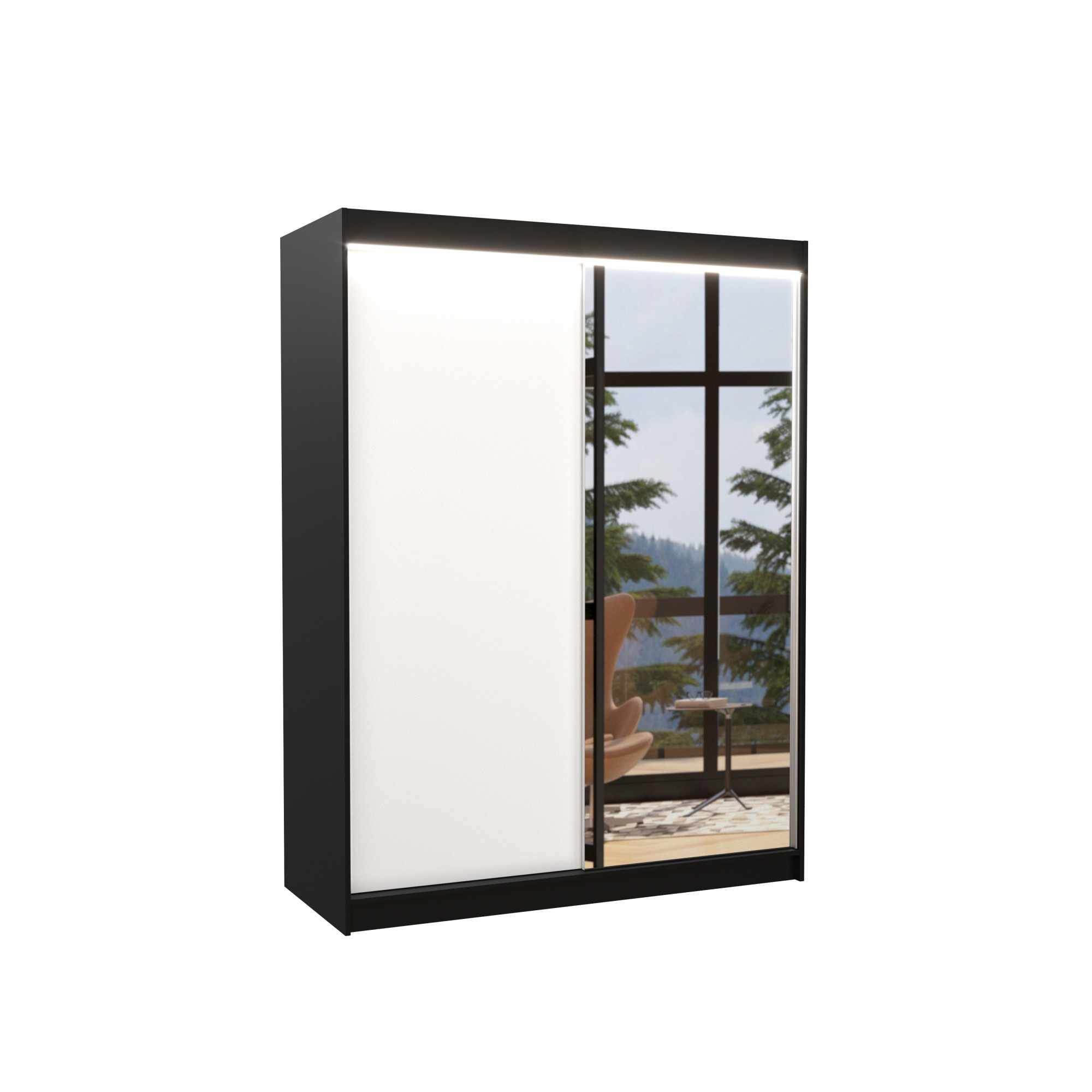 Posuvná skříň se zrcadlem a LED osvětlením JORDI 150 Černá+Bílá