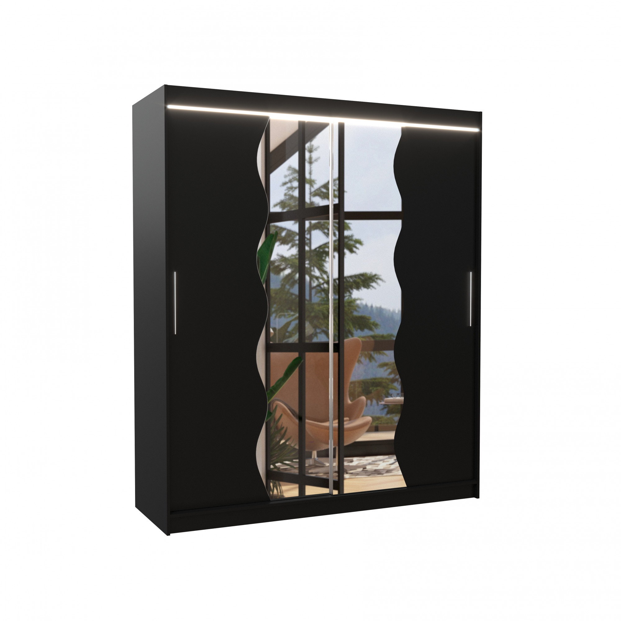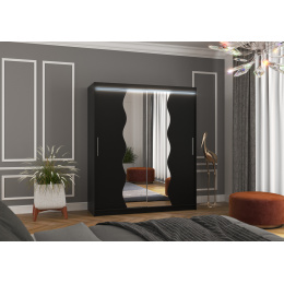 Posuvná skříň se zrcadlem a LED osvětlením KANSAS 180 Černá+Černá