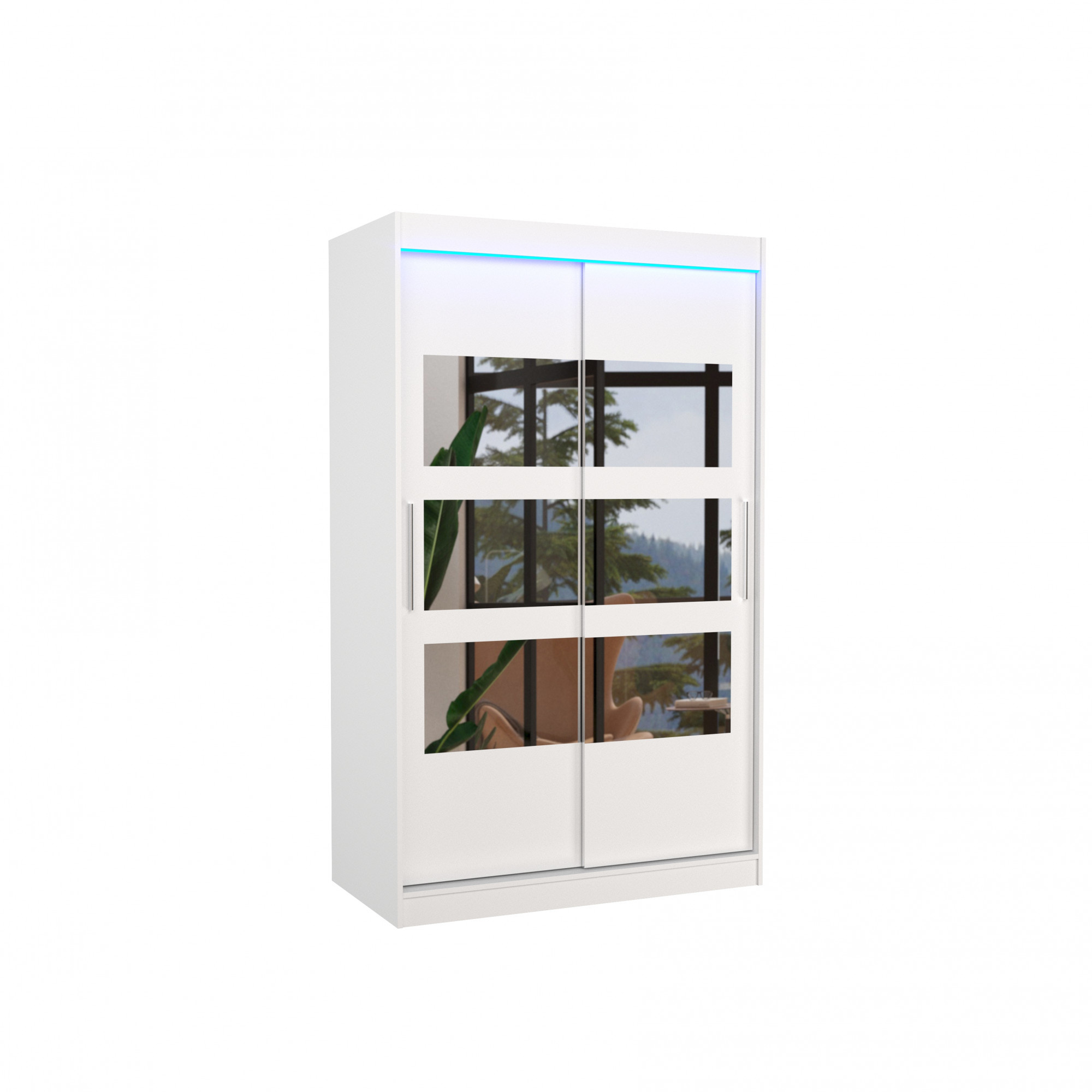 Posuvná skříň se zrcadlem a LED osvětlením KOLORADO 120 Bílá+Bílá