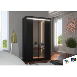 Posuvná skříň se zrcadlem a LED osvětlením MARVIN 120 Černá+Černá