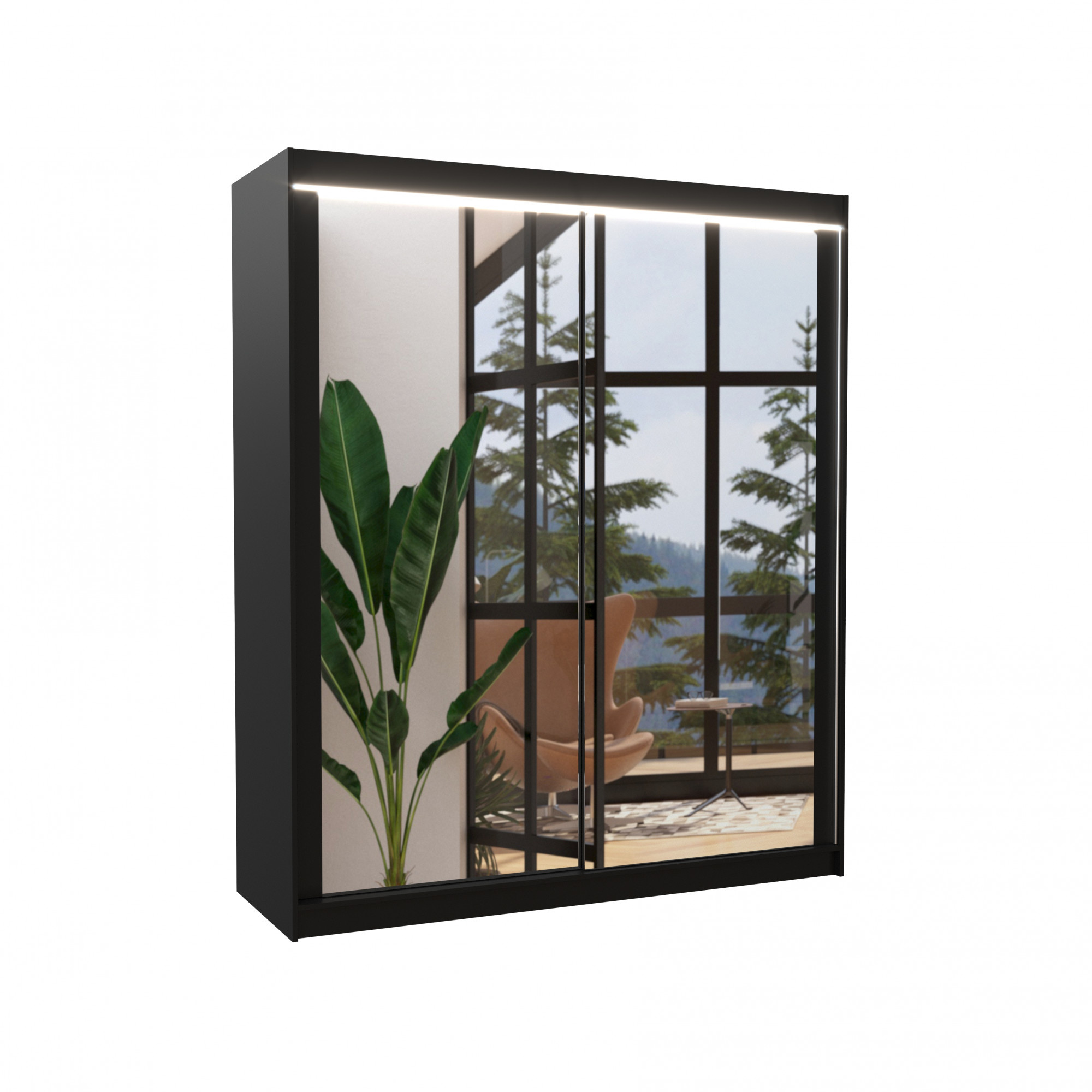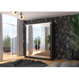 Posuvná skříň se zrcadlem a LED osvětlením MORGAN 180 Černá+Černá