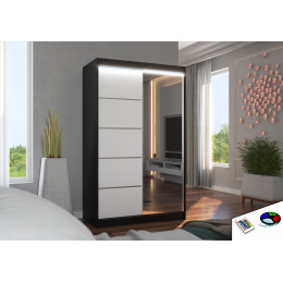 Posuvná skříň se zrcadlem a LED osvětlením NICEA 120 Černá+Bílá