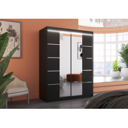 Posuvná skříň se zrcadlem a LED osvětlením NORDIC 150 Černá+Černá