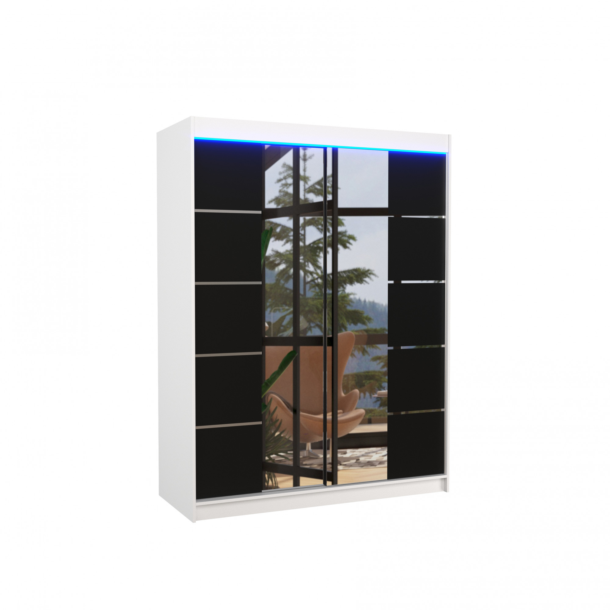 Posuvná skříň se zrcadlem a LED osvětlením NORDIC 150 Bílá+Černá