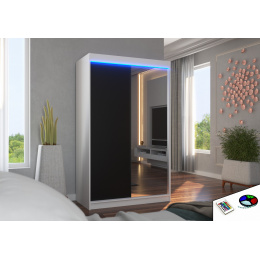 Posuvná skříň se zrcadlem a LED osvětlením REWENA 120 Bílá+Černá