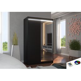 Posuvná skříň se zrcadlem a LED osvětlením REWENA 120 Černá+Černá