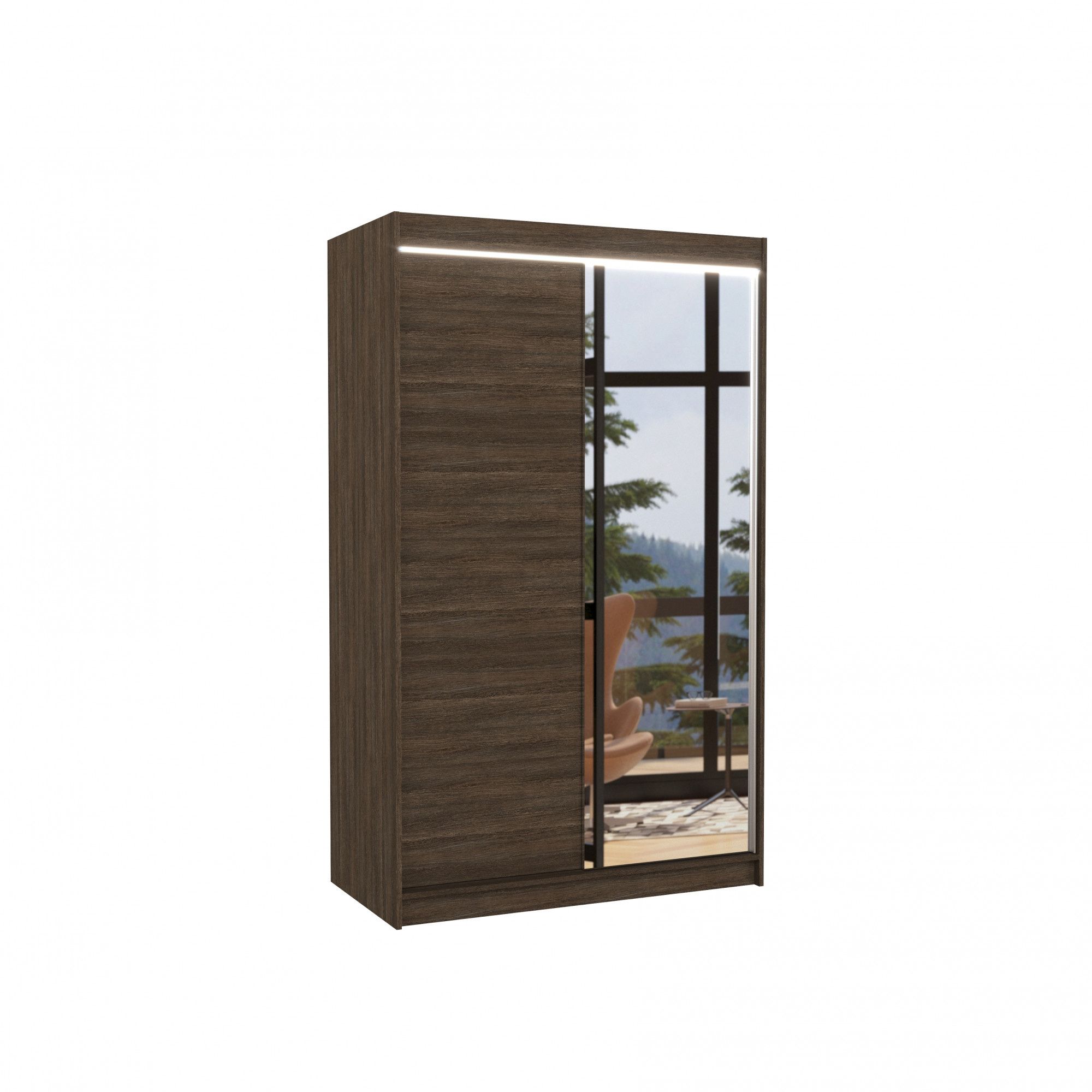 Posuvná skříň se zrcadlem a LED osvětlením REWENA 120 Choco+Choco