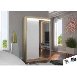 Posuvná skříň se zrcadlem a LED osvětlením REWENA 120 Sonoma+White
