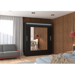 Posuvná skříň se zrcadlem a LED osvětlením ROSETTE 180 Černá+Černá