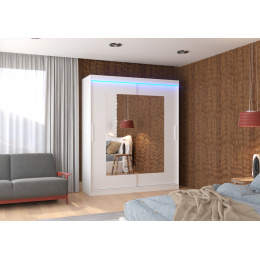 Posuvná skříň se zrcadlem a LED osvětlením ROSETTE 180 Bílá+Bílá