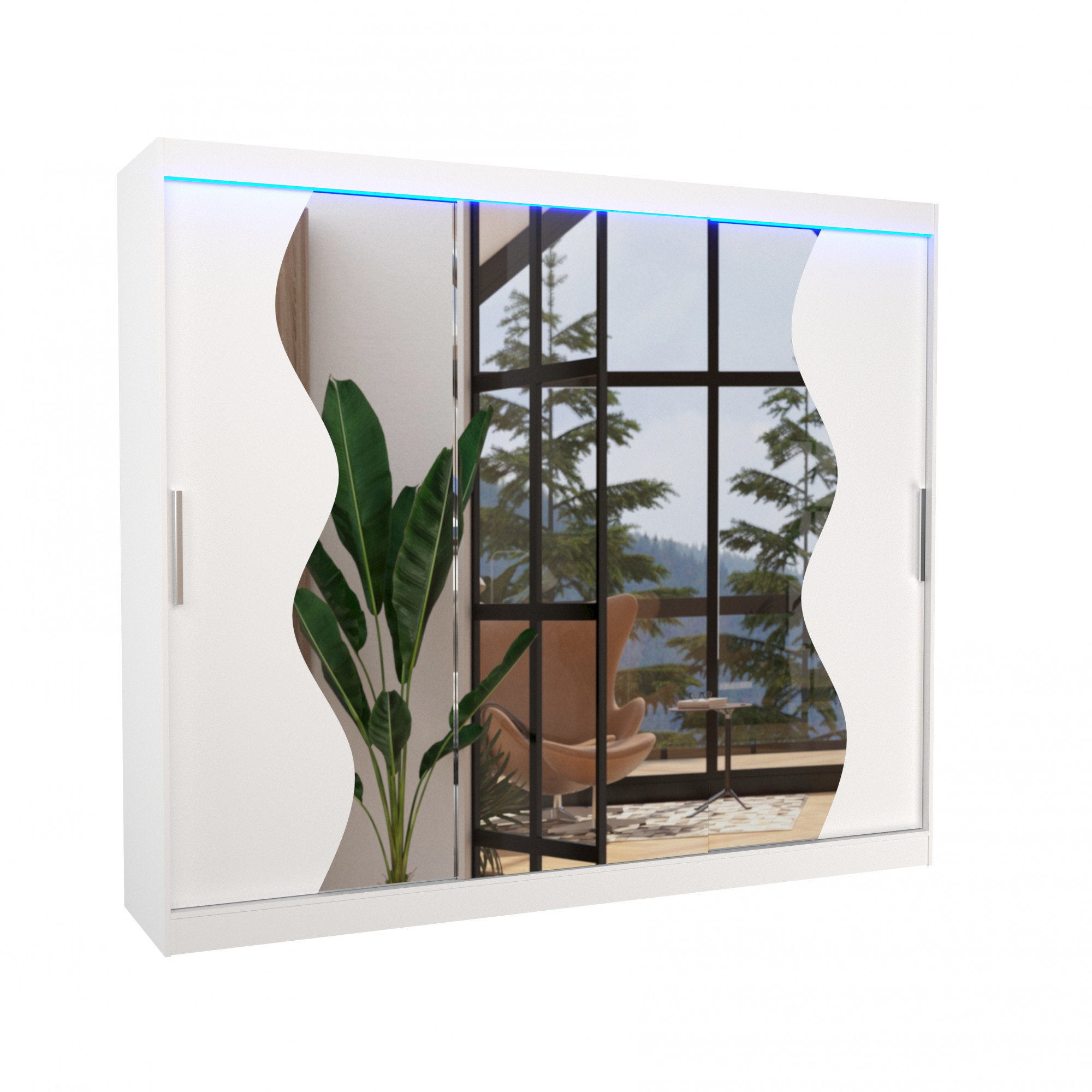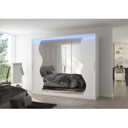Posuvná skříň se zrcadlem a LED osvětlením SHARON 250 Bílá+Bílá