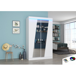 Posuvná skříň se zrcadlem a LED osvětlením TEXAS 120 Bílá+Bílá