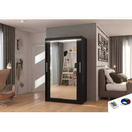 Posuvná skříň se zrcadlem a LED osvětlením TIBAGO 120 Černá+Černá