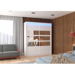 Posuvná skříň se zrcadlem a LED osvětlením TOLEDO 180 Bílá+Bílá