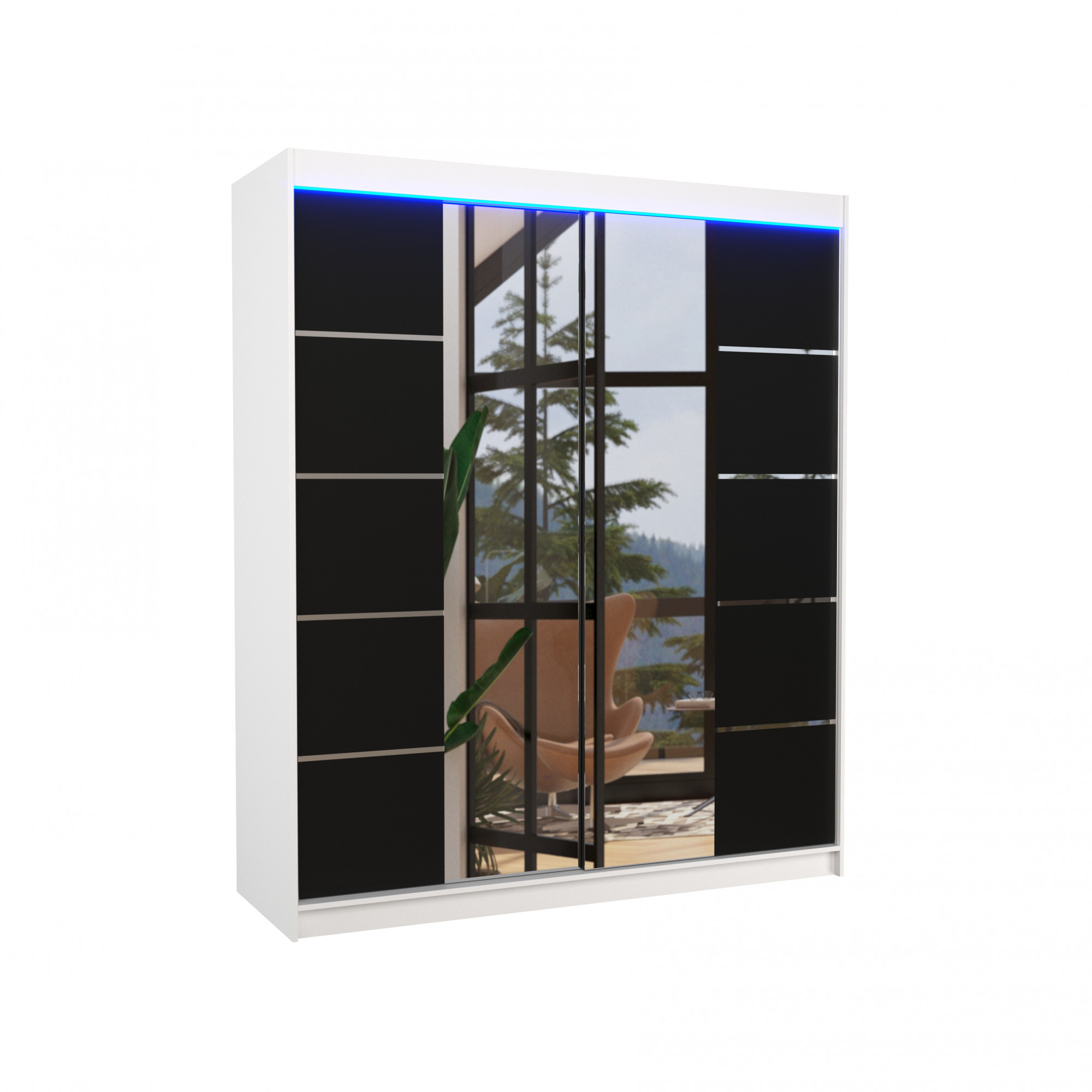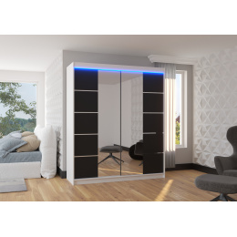 Posuvná skříň se zrcadlem a LED osvětlením TRAVES 180 Bílá+Černá