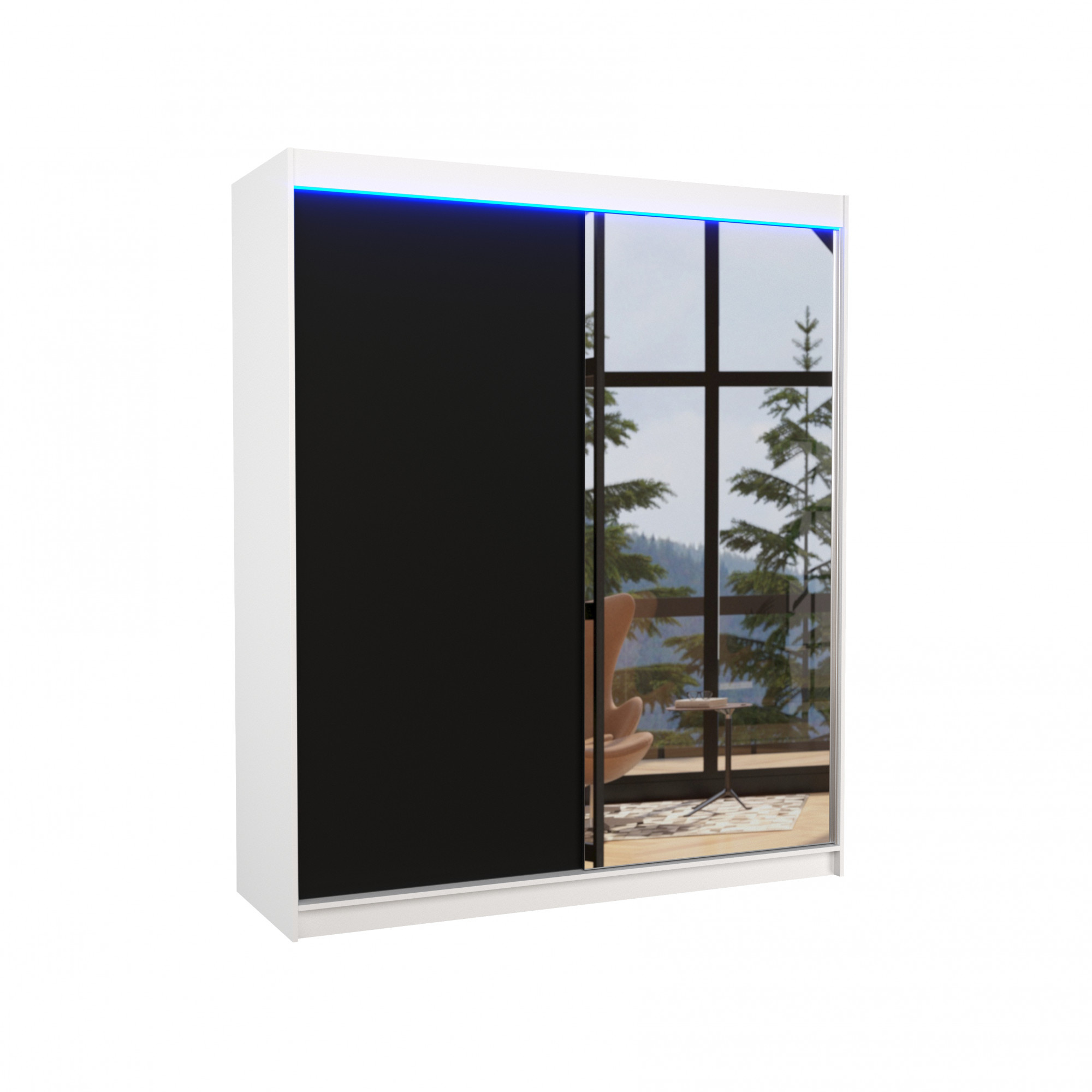 Posuvná skříň se zrcadlem a LED osvětlením VIKI 180 Bílá+Černá