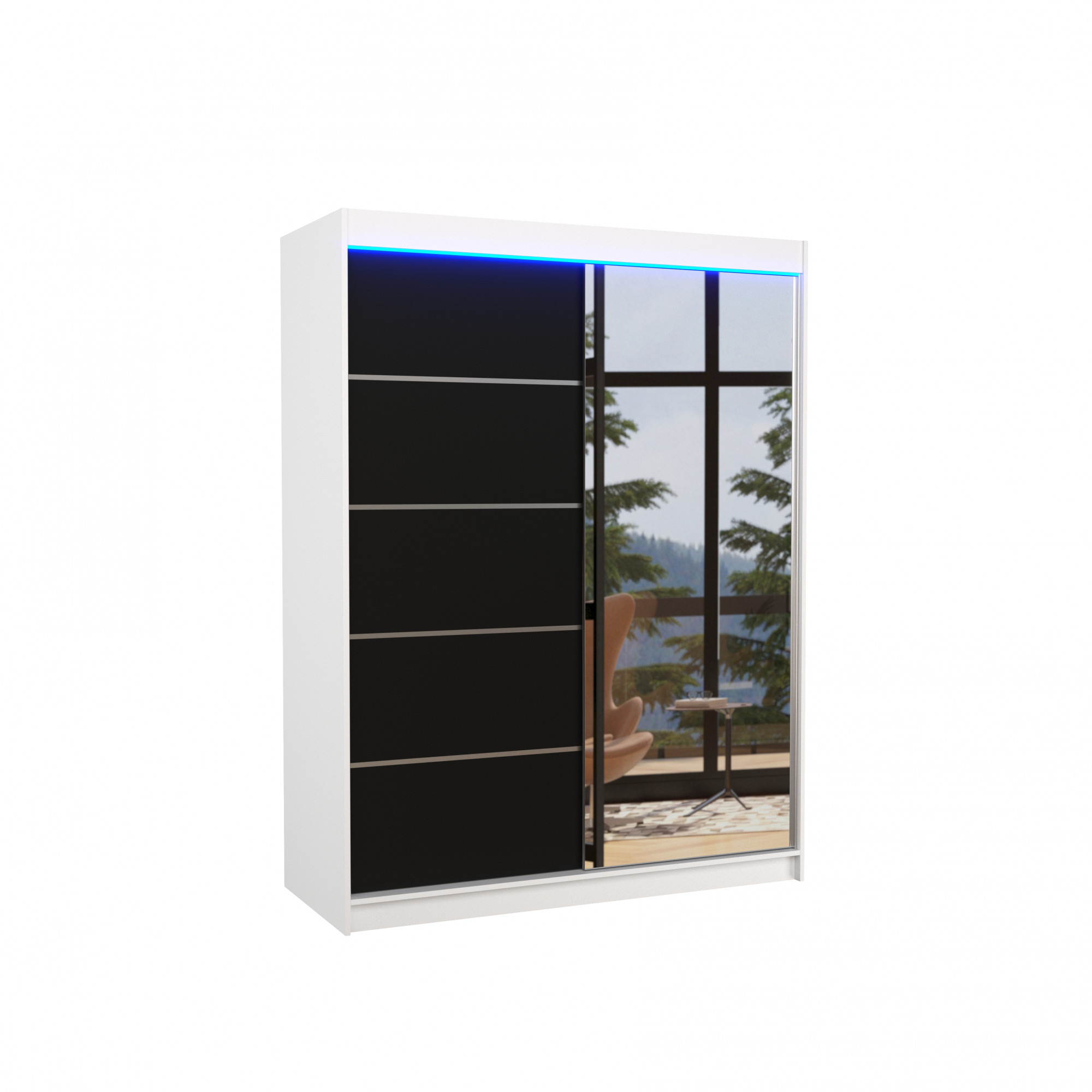 Posuvná skříň se zrcadlem a LED osvětlením LIMBO 150 Bílá+Černá