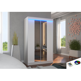 Posuvná skříň se zrcadlem a LED osvětlením MARVIN 120 Bílá+Bílá